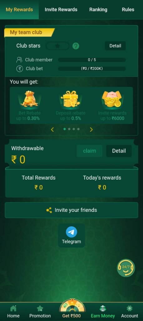 New users often get a bonus (₹200 or more) after registration, which can be used to start playing.