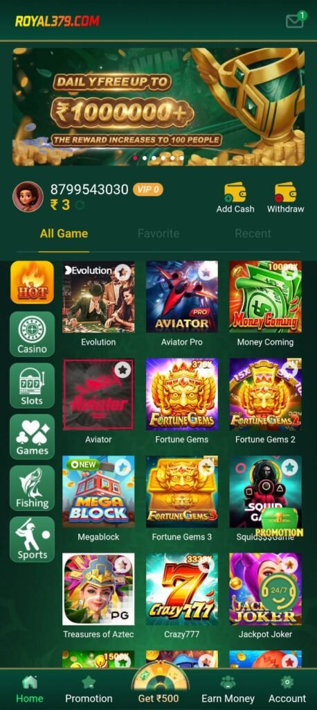 ROYAL379 Game is one of the fastest-growing online gaming platforms where users can play simple games and earn real money. It has become popular among players in India due to its easy interface, fast withdrawals, and attractive signup bonuses.